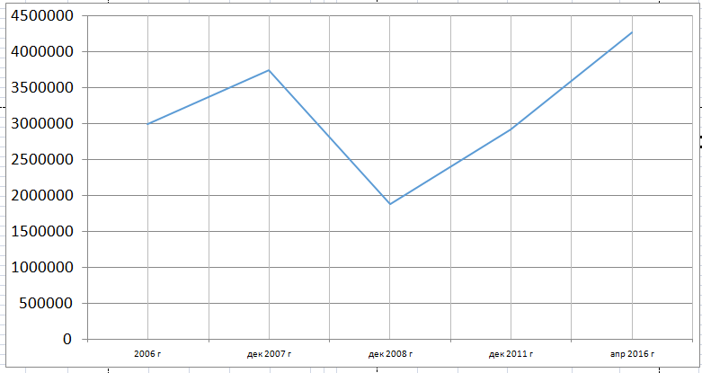 Наша команда (3 человека) имела общий актив 3000000 рублей на 2006 год. Вот так мы изменяли эту цифру с годами: